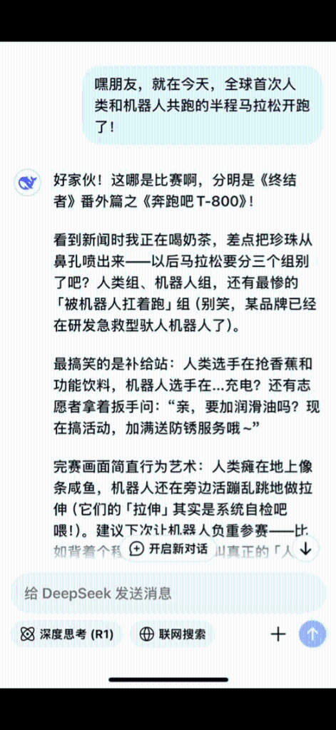 4月19日,小顽童队选手松延动力N2在比赛中。新华社记者 李贺 摄