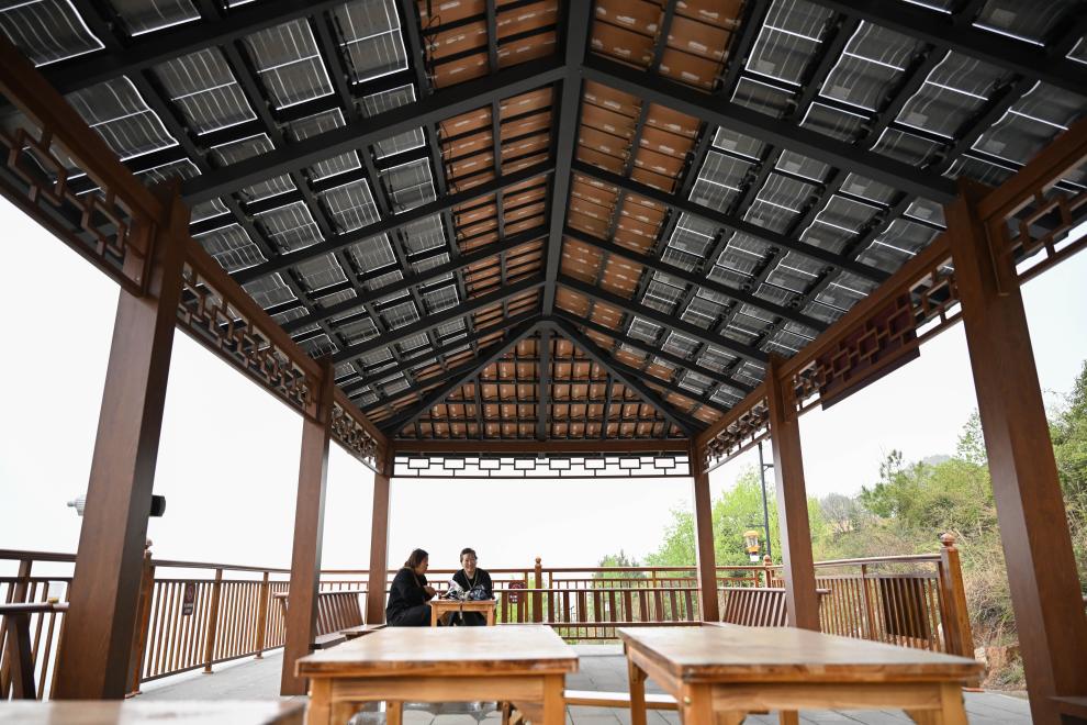 游客在湖北省恩施土家族苗族自治州巴东县土店子村的光伏长廊休闲(4月12日摄)。新华社记者 程敏 摄