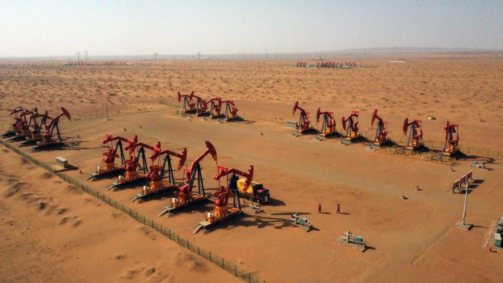 内蒙古河套盆地钻井开采原油(无人机照片)。新华社发