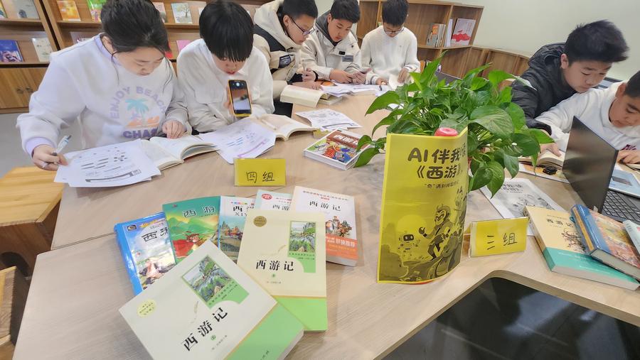沈阳市浑南区第九初级中学学生利用AI阅读《西游记》。新华社记者 王莹 摄