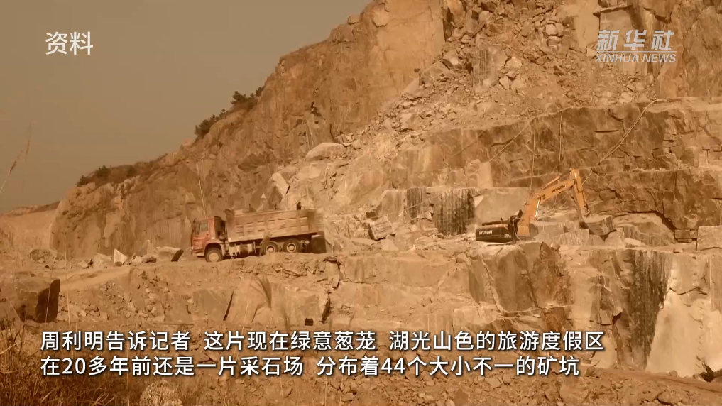 周利明告诉记者,这片现在绿意葱茏、湖光山色的旅游度假区在20多年前还是一片采石场,分布着44个大小不一的矿坑,山体裸露、植被破坏、水土流失严重。