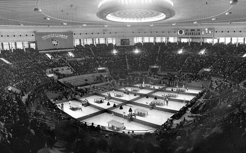 ↑1961年4月4日至14日,第26届世界乒乓球锦标赛在北京工人体育馆举行,这是中华人民共和国成立以来第一次举办的世界大赛。中国运动员在本届比赛中夺得了男子团体冠军和女子团体亚军、男、女单打冠军,中国队还获得4项亚军和8项季军。这里见证了世界乒坛“中国时代”的到来。新华社发(资料照片)