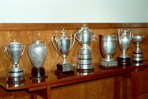 ↑图为中国乒乓球代表团在第36届世乒赛中取得全部七项冠军的奖杯。1981年在第36届世乒赛,中国乒乓球队第一次包揽了世乒赛全部七项冠军。新华社发(资料照片)