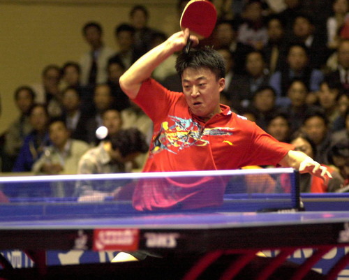 ↑2000年10月15日,在江苏扬州举行的第21届世界杯男子乒乓球锦标赛决赛中,中国选手马琳直落三局战胜韩国名将金泽洙,获得冠军。国际乒联特别大会和代表大会2000年2月23日在吉隆坡通过40毫米大球改革方案,决定从当年10月1日起,乒乓球比赛将使用直径40毫米、重量2.7克的大球,以取代38毫米的小球。马琳因此成为“大球时代”的首个世界冠军。新华社发
