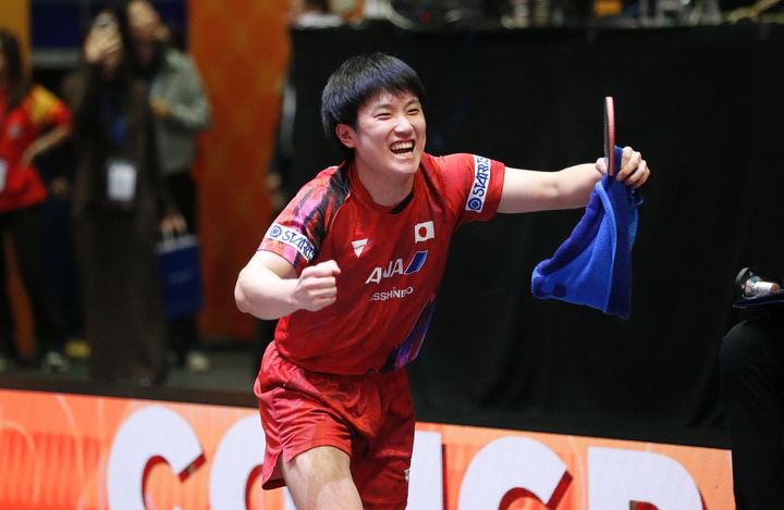 ↑2024年10月13日,在哈萨克斯坦阿斯塔纳举行的2024年乒乓球亚锦赛男单决赛中,日本选手张本智和3比1战胜中国选手林诗栋,夺得冠军。新华社发(奥斯帕诺夫摄)