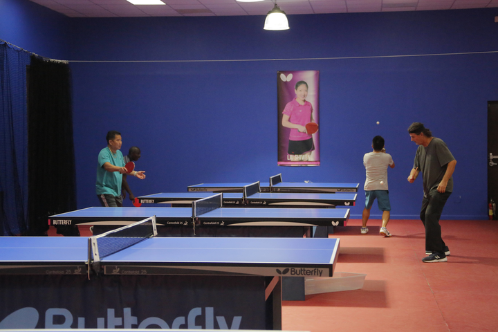 ↑2021年11月13日,在美国得克萨斯州休斯敦一家乒乓球馆,当地乒乓球爱好者正在打球。新华社发(劳承跃摄)