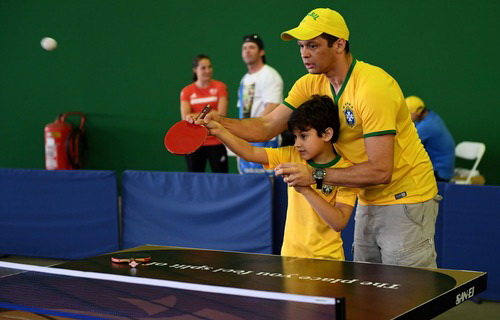 ↑2016年8月7日,一名男孩在里约中心体育馆学习打乒乓球(8月7日摄)。新华社记者蔺以光摄