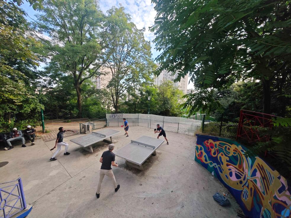 ↑2024年8月8日,法国巴黎一处公园里,市民们正在打乒乓球。新华社记者 李尕 摄