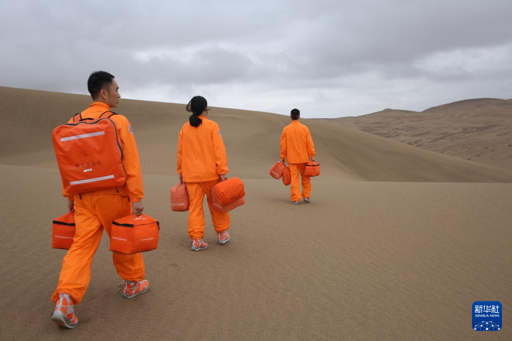 神舟二十号航天员陈中瑞(左)在参加沙漠生存训练(2022年6月21日摄)。新华社发(周程博 摄)