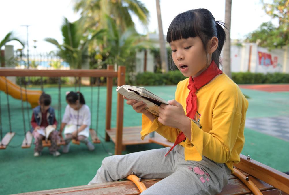 三沙市永兴学校的小学生在操场上晨读。(资料照片)新华社发(蒲晓旭 摄)