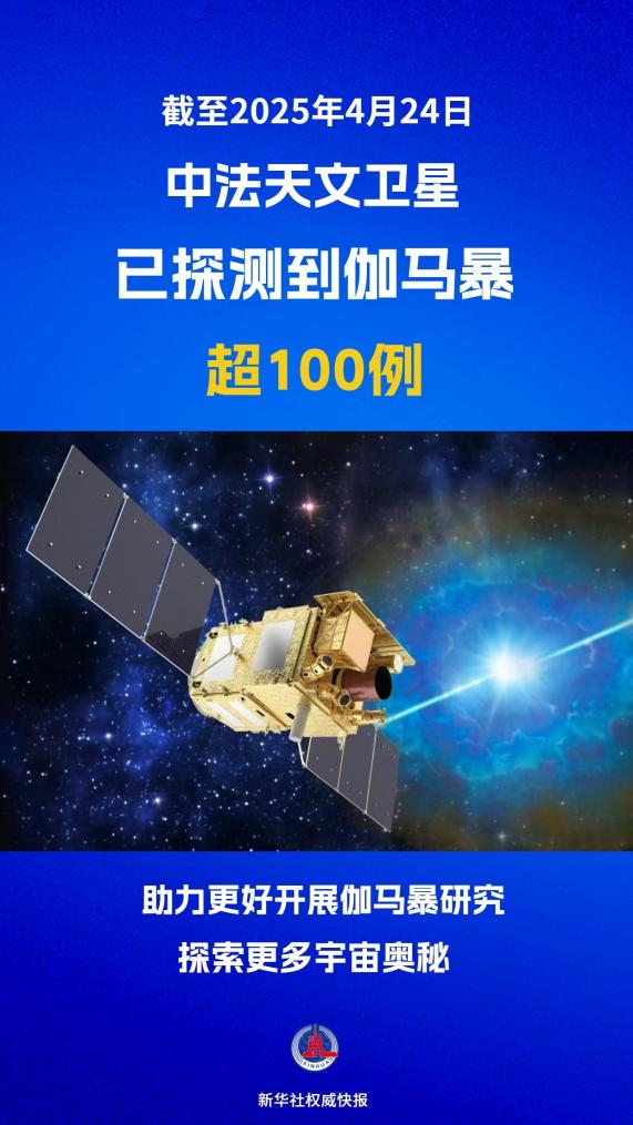 记者4月24日从第十个“中国航天日”启动仪式上获悉,中法天文卫星已探测到超过100例伽马暴,包括一例来自130亿年前“婴儿期宇宙”的伽马暴,以及多例特殊类型伽马暴。这些发现证明了中法天文卫星多波段探测的优越性,也将为更好开展伽马暴相关研究提供有力支撑。