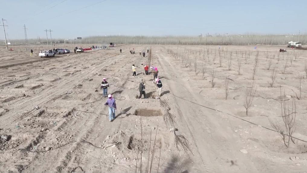 位于祁连山北麓的甘肃省瓜州县,是全国风能储量最大的地区之一。在河西走廊的春风中,瓜州县抢抓植树造林黄金期,在全县各地开展植绿护绿活动。植树现场,干部职工与广大群众热情高涨、干劲十足。