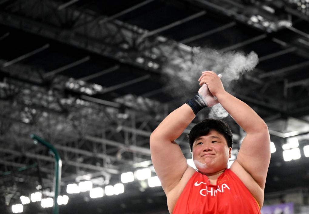 3月21日,中国选手巩立姣在女子铅球决赛中试投后向观众致意。当日,2025南京世界田联室内锦标赛在江苏南京体育训练中心室内田径馆举行首日比赛。新华社记者 宋彦桦 摄
