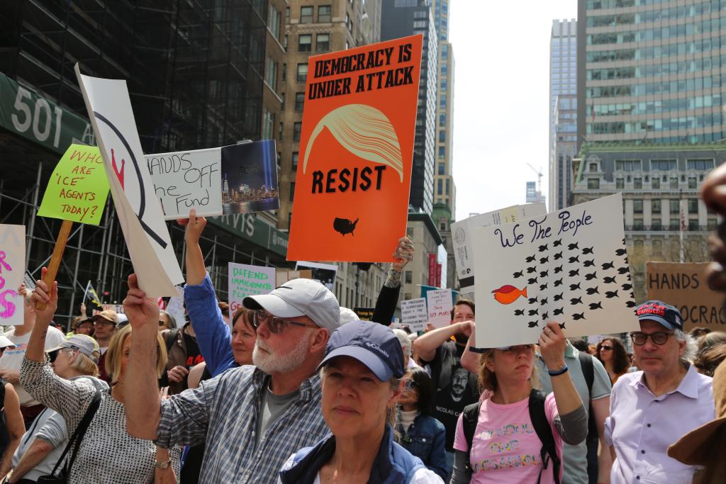 仅4月,全美就发生抗议活动逾千场,覆盖全部50个州。4月19日,美国多地举行抗议活动,首都华盛顿、纽约、旧金山、波士顿等城市的民众走上街头,谴责特朗普政府驱逐移民、政府大规模裁员、加征关税等政策侵犯公民权利、违反宪法。