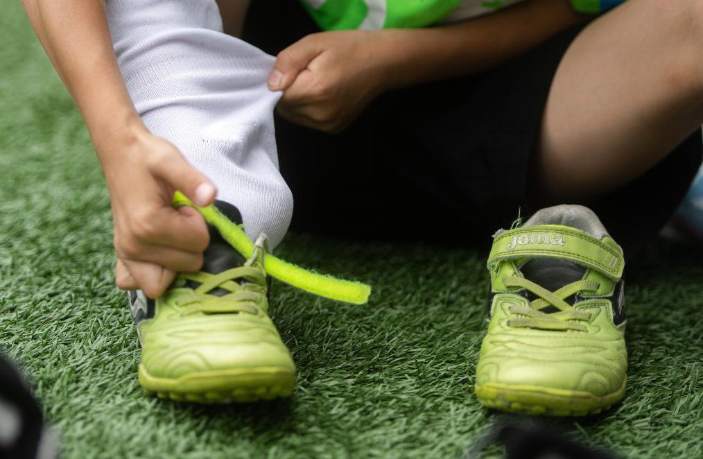 ↑2024年5月31日,在湖北省武汉市江汉区万松园路小学,一名学生在放学后准备参与足球训练。 新华社记者 杜子璇 摄