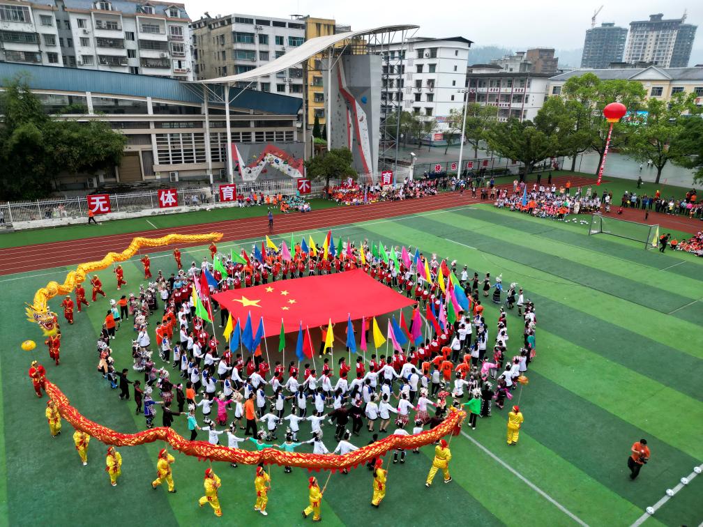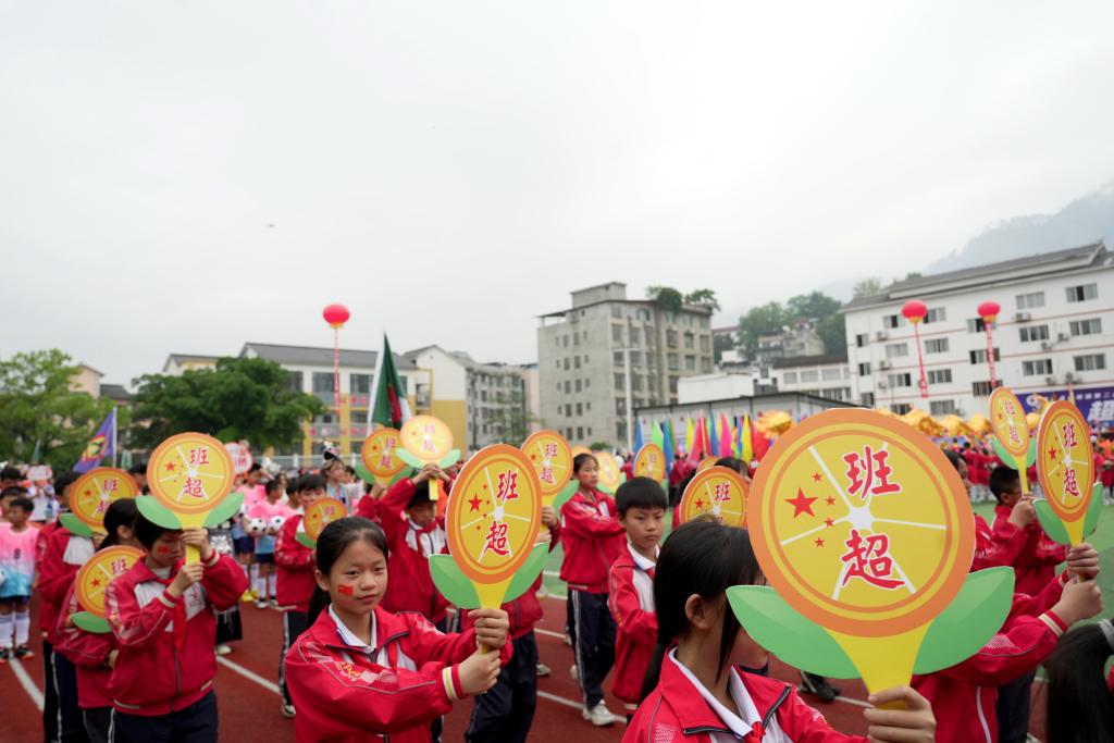 ↑2024年4月9日,贵州省榕江县定威水族乡中心校学生正在进行“班超”比赛。新华社发 (吴汉军 摄)