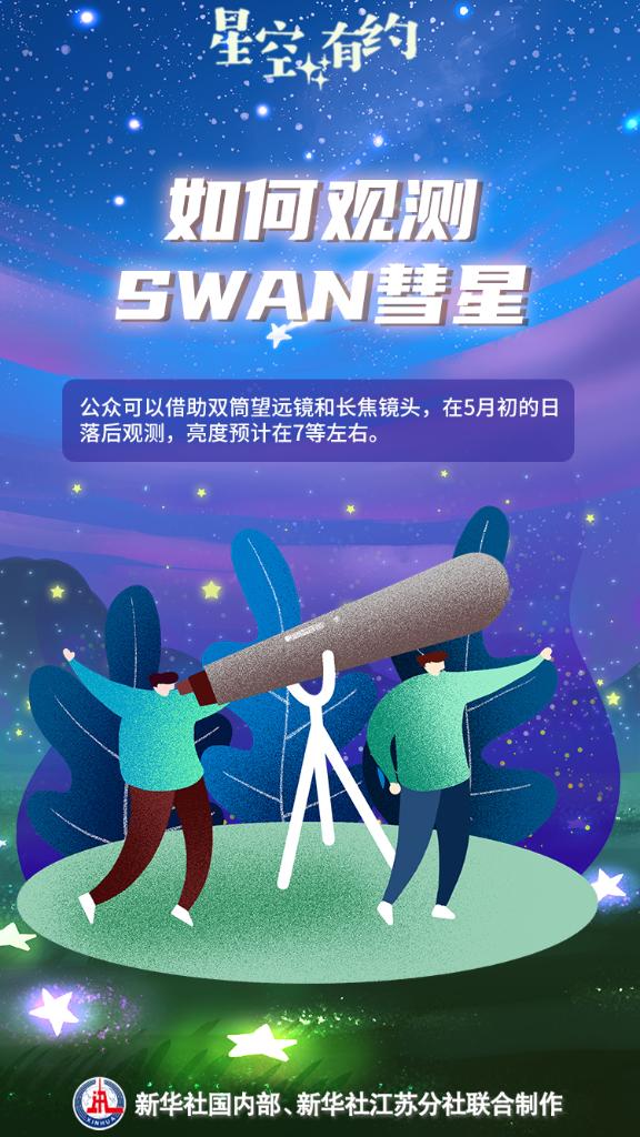 中国科学院紫金山天文台科普主管王科超介绍,这颗彗星由外国天文研究者通过检视SOHO探测器拍摄的最新图像发现。4月10日,该彗星被国际小行星中心正式命名为“C/2025 F2(SWAN)”。