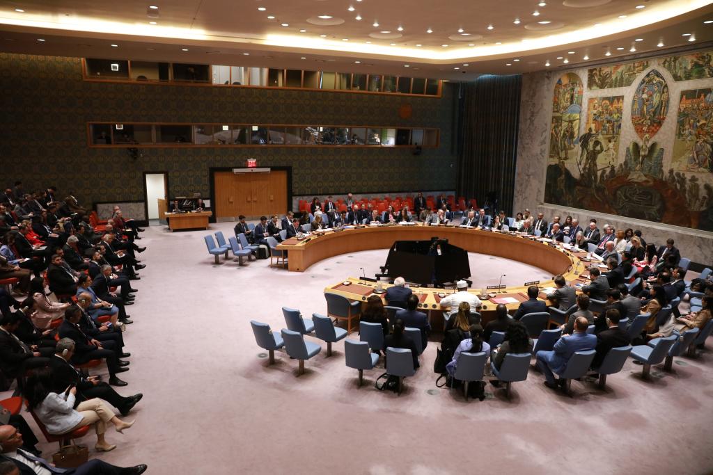 4月29日,在位于纽约的联合国总部,安理会召开中东问题公开辩论会。新华社记者 谢锷 摄