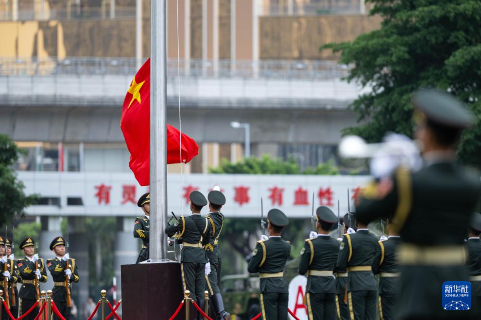 5月1日,中国人民解放军驻澳门部队官兵进行升国旗仪式。新华社发(张金加 摄)