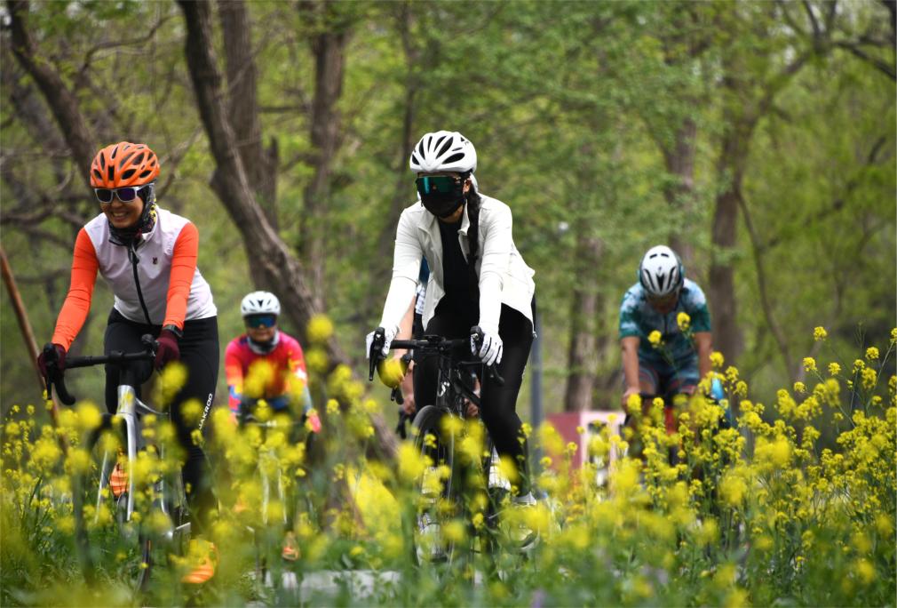4月19日,自行车运动爱好者在山东日照的海滨骑行绿道。新华社记者 范长国 摄