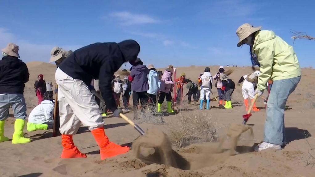 在收成镇治沙现场,民勤县种林公益发展中心负责人仲麟表示,通过“请到民勤种棵树”活动,越来越多全国各地年轻人加入进来,“希望能把这件有意义的事情一直坚持做下去。”