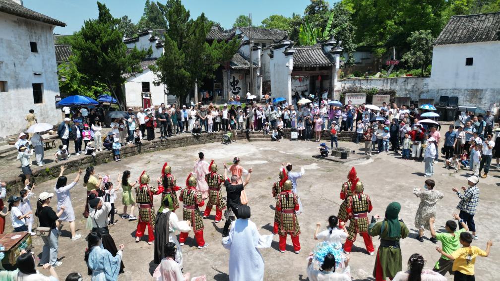 “五一”期间,兰溪市诸葛村上演古装快闪表演。(韩淼 摄)