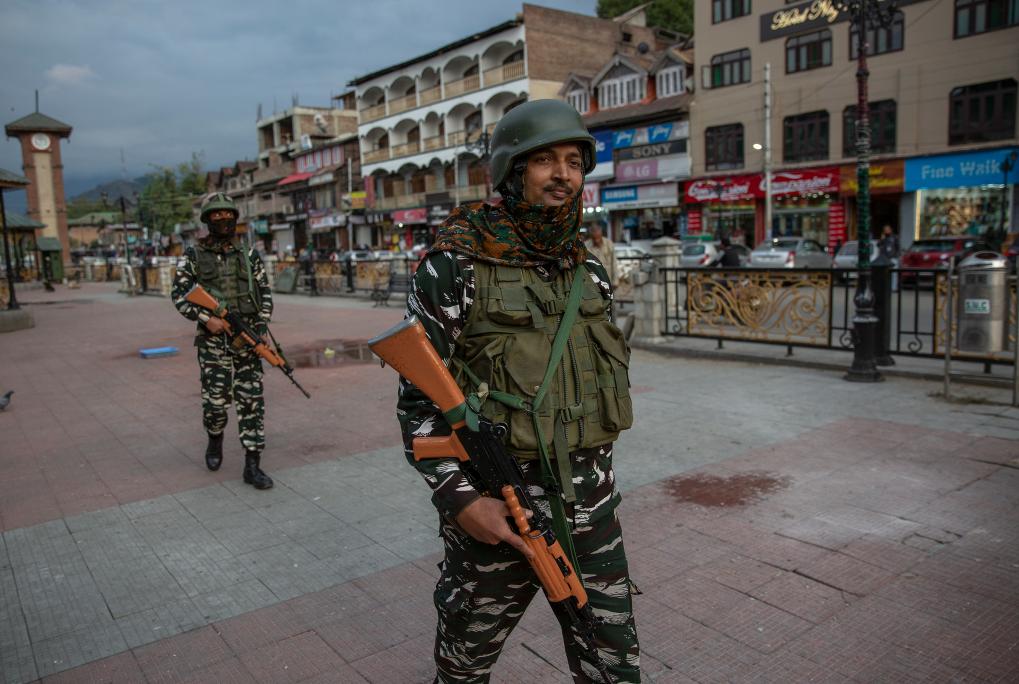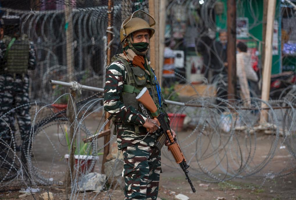 2021年10月11日,印度军人在印控克什米尔斯利那加街头执勤。新华社发(贾韦德·达尔摄)