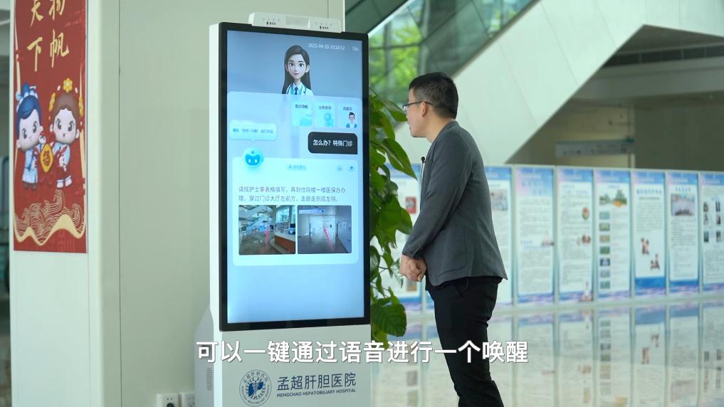福建医科大学孟超肝胆医院上线了导诊智能数字人“小觅”,可以通过“你好”,加上患者问题即可唤醒“小觅”。数字智能人“小觅”可快速定位需求,准确给出回答。