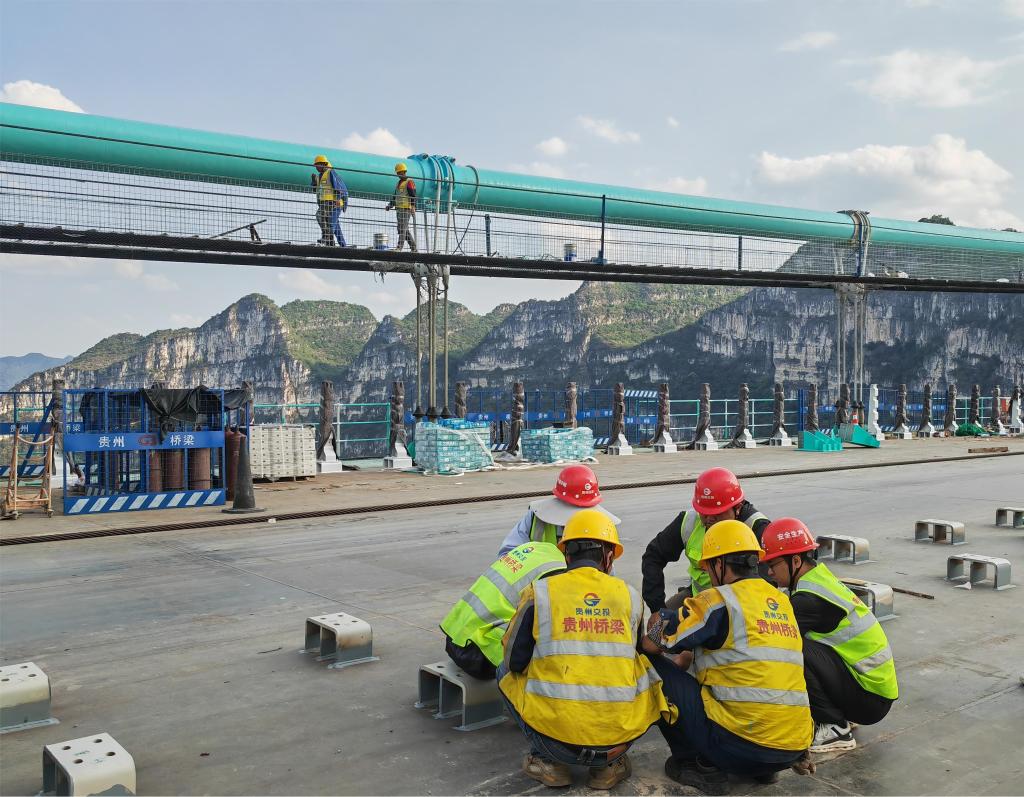 这个“五一”假期,在项目部成员的带领下,近百名一线建设者正悬吊在距谷底625米的猫道上,为大桥主缆穿上能抵御1100℃烈焰的“铠甲”,劳务班组的负责人刘国彬介绍,大桥未来会通行油罐车等高风险车辆,所以主缆防护层被赋予“抗火+防腐”双重使命。整个班组节假日不休息,努力为后续施工留出时间,确保大桥按期通车。