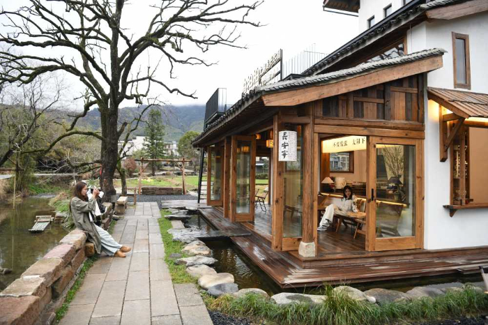 2025年3月13日,游客在安徽省黄山市黟县宏村镇塔川村一家民宿内休闲。新华社记者刘军喜摄