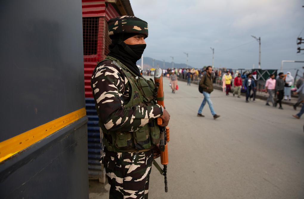 2021年10月11日,印度军人在印控克什米尔斯利那加街头执勤。新华社发(贾韦德·达尔摄)