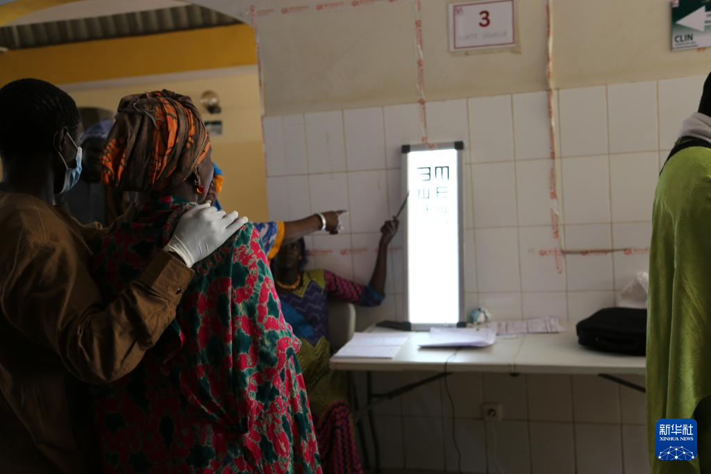 5月2日,在塞内加尔西部法蒂克大区中心医院,患者接受视力检查。新华社记者 司源 摄