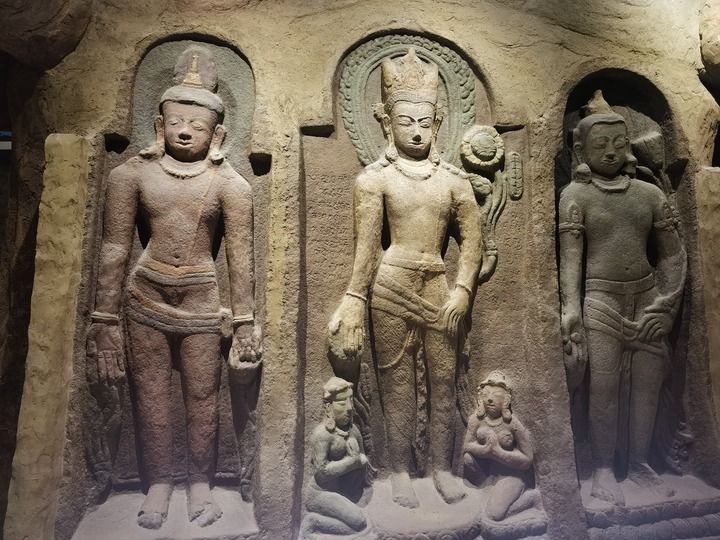 这是日喀则石刻艺术博物馆中的充堆摩崖石刻造像,原址位于吉隆镇充堆村,雕刻于公元8世纪。造像“S”形身躯、腰间的“T”形腰带等都是公元7-9世纪南亚风格造像中的盛行元素,证明这一区域中印文化交流密切频繁(2024年12月17日摄)。新华社记者 储国强 摄