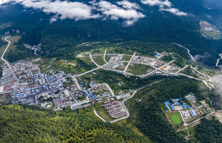 鸟瞰吉隆镇,这里高山雪峰林立,原始森林密布,自然风光秀美(2023年9月12日摄,无人机照片)。新华社记者 姜帆 摄