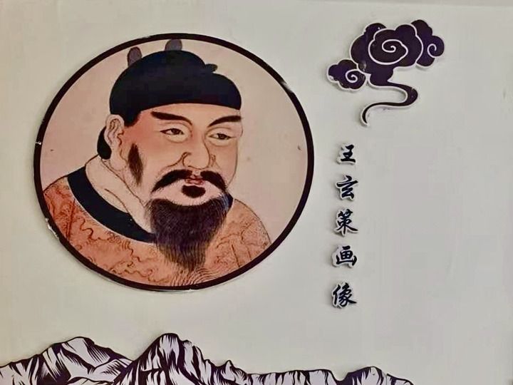 这是“大唐天竺使之铭”摩崖石刻原址旁悬挂的王玄策画像(2024年12月16日摄)。新华社记者 翟永冠 摄