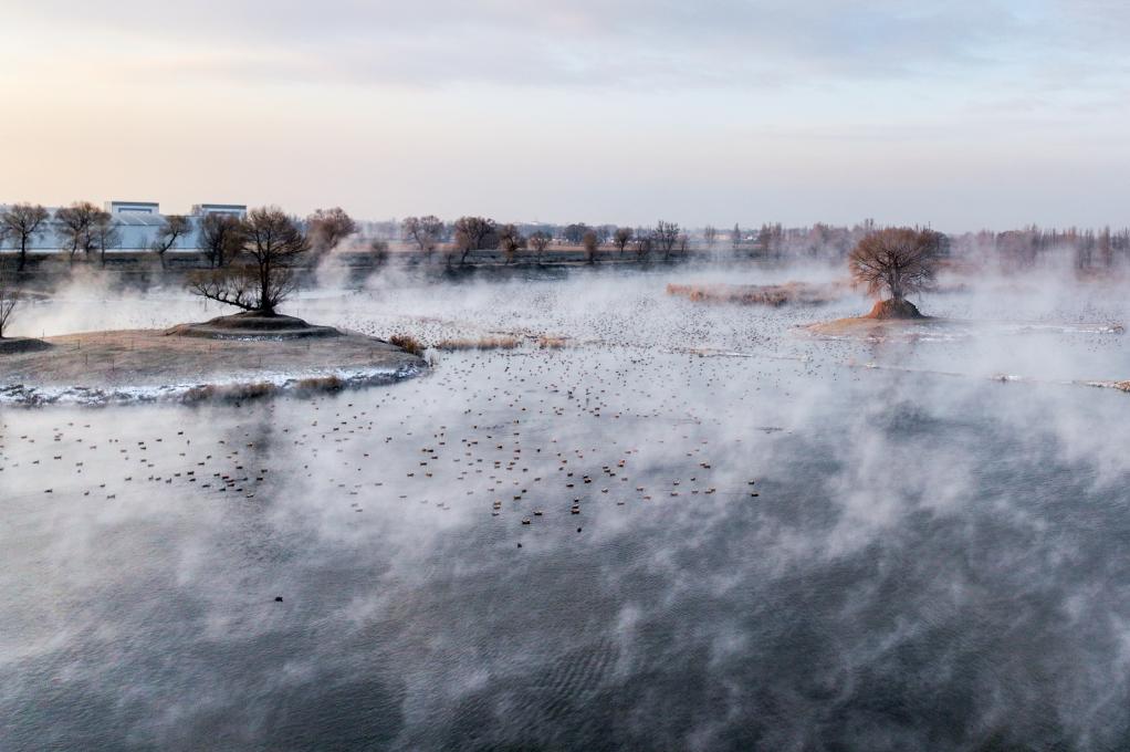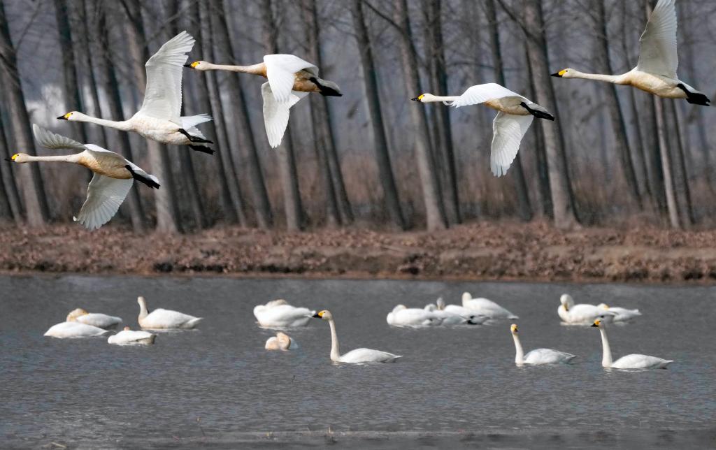 这是4月1日在黑龙江省鸡西市拍摄的兴凯湖国家级自然保护区内的候鸟。新华社记者 谢剑飞 摄