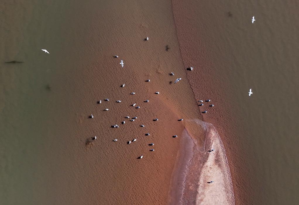 这是1月12日在江西上饶市余干县白鹤洲拍摄的候鸟。 新华社发(曹正平摄)