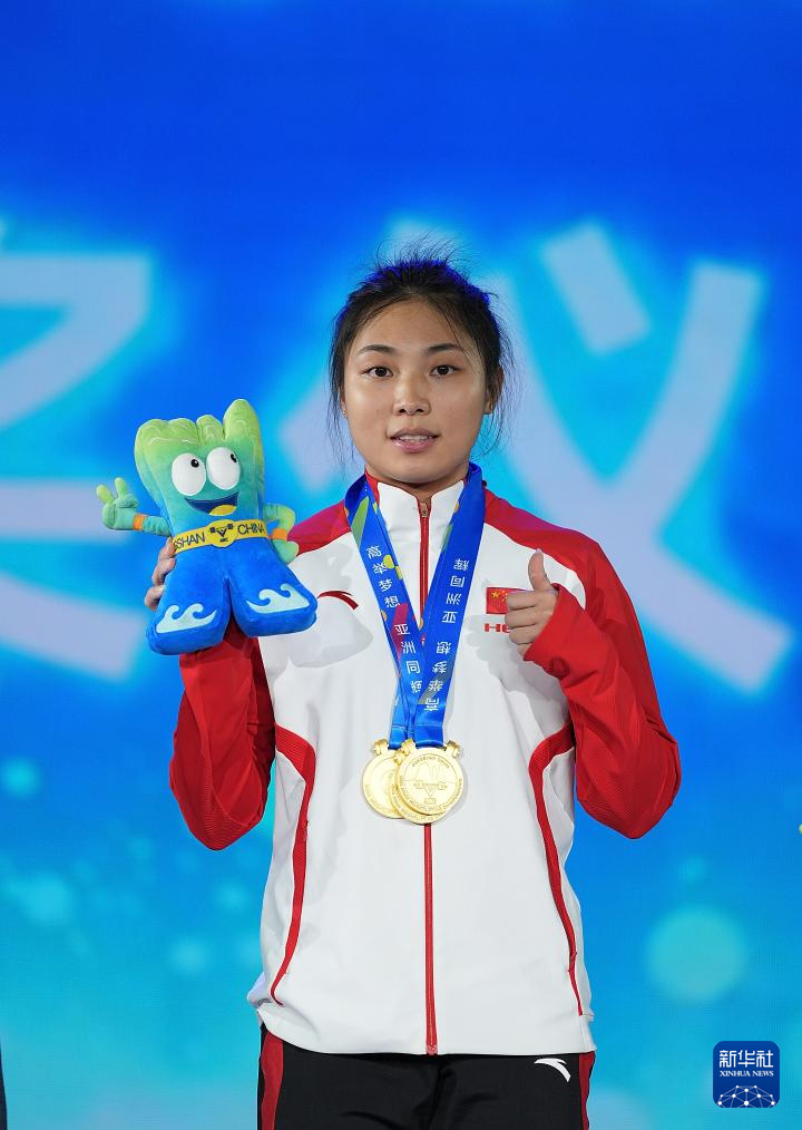 新华社北京5月10日电(记者郁思辉)在浙江江山举行的2025年亚洲举重锦标赛10日进入第二个比赛日,中国队选手张海琴6次试举全部成功,大幅领先对手夺得三枚金牌,并打破抓举、挺举、总成绩三项世界青年纪录。