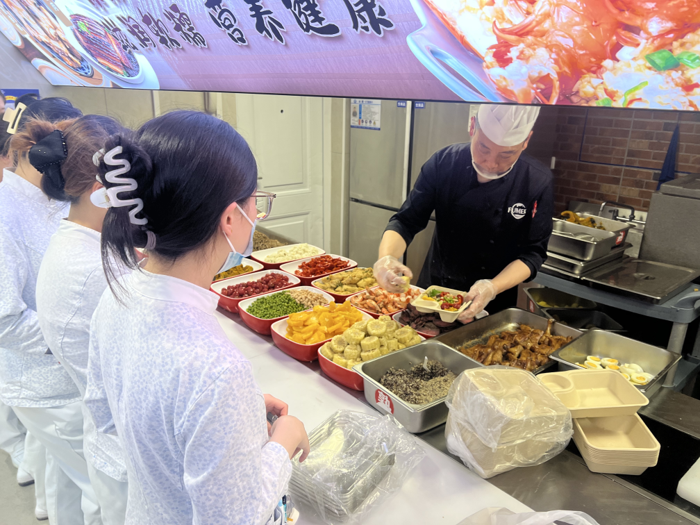 在病房走廊,这场“健康革命”同样悄然发生。临床营养科为住院患者及陪护家属定制的减脂餐,将高饱腹感食材与家常风味巧妙结合。一位连续预订一周餐食的家属展示手机里的对比照:“跟着营养师‘抄作业’,腰围真的小了一圈!”而医务人员们饭后参与的互动小游戏,则将“生活化减脂”理念融入举手投足。