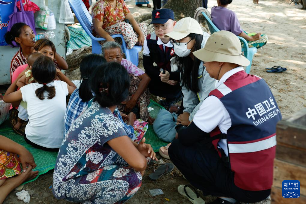 “身体都好吗?”“接种疫苗了吗?”“食物和水都有保障吗?”中国政府援缅卫生防疫队成员日前在缅甸曼德勒地震灾民安置点走访时亲切地向灾民们询问。