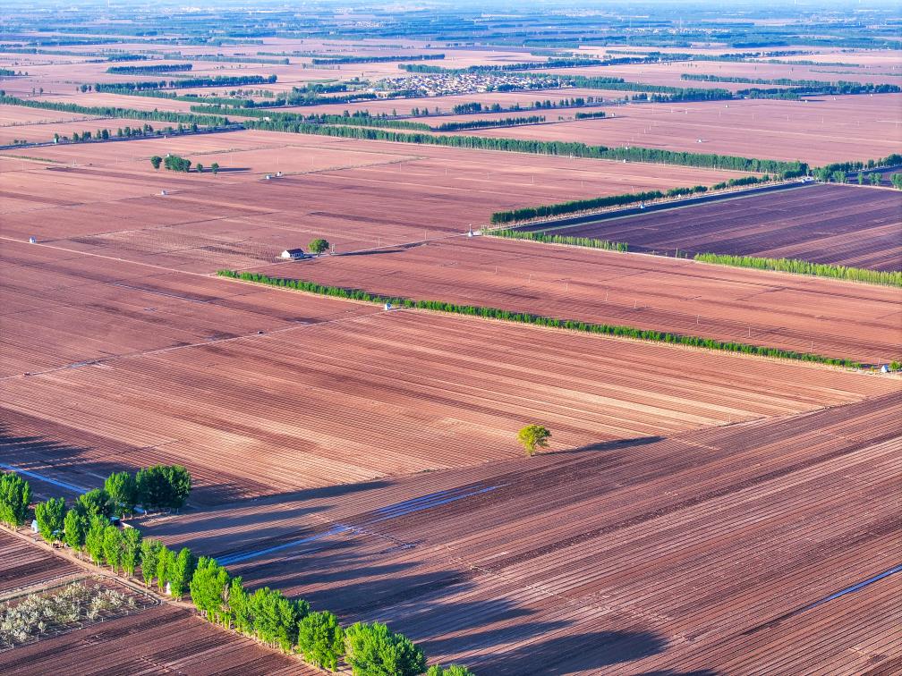 这是在内蒙古通辽市科尔沁区钱家店镇坤都花村,已经完成播种的良田(5月10日摄,无人机照片)。新华社记者连振 摄
