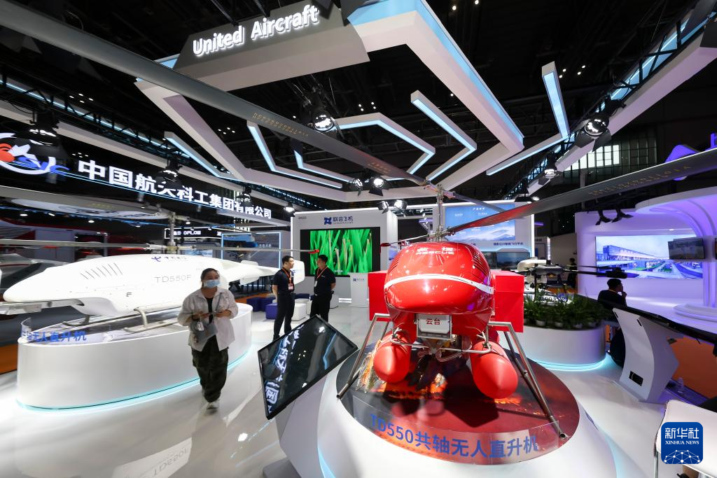这是5月13日在联合飞机展位拍摄的用于应急救援的无人直升机。新华社记者 王翔 摄