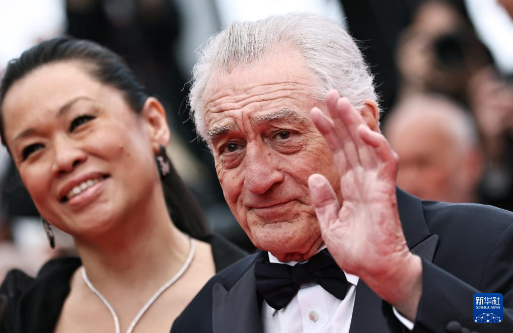 5月13日,在法国戛纳举行的第78届戛纳国际电影节上,美国演员、导演兼制片人罗伯特·德尼罗(右)亮相开幕式红毯。在开幕式上,罗伯特·德尼罗获颁荣誉金棕榈奖,以表彰其终身成就。新华社记者 高静 摄