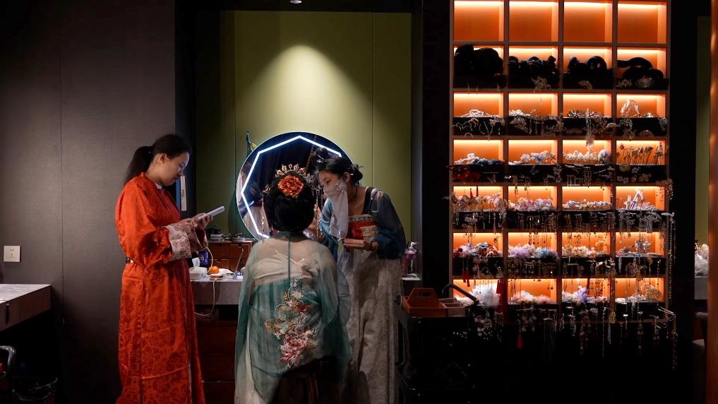 洛阳打造的"武皇盛宴"项目,将武则天故事与牡丹、龙门石窟等元素完美融合。通过全息投影、巨幅水幕等科技手段,让游客在品尝美食的同时穿越回大唐盛世。十三坊特色街区还设有"妆造司",游客可换上汉服沉浸体验,三家门店场场爆满,需提前一周预约。