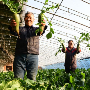 从棚室结构选择、土壤肥料,到栽培技术、水肥调控、病虫害防治,老谢通过新的种植方式,不到四个月,成熟的萝卜硕大紧实、皮薄心甜。沙窝萝卜上架多个线上线下超市,2024年销售额达到2.5亿元,同比增长108%。