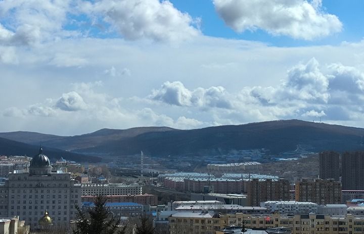 这是一座山城,想去什么地方都得经过一番“爬坡下坎”。绥芬河市地处完达山脉张广才岭余脉,城市海拔高低差可达六百米。远眺城市地平线,丘陵轮廓蛇行绵延,与鳞次栉比的高楼和大厦上闪烁的金色穹顶组成一幅和谐的画卷。