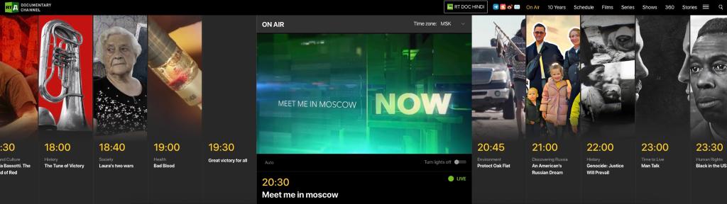 “今日俄罗斯”电视台纪录片频道网站的直播页面。