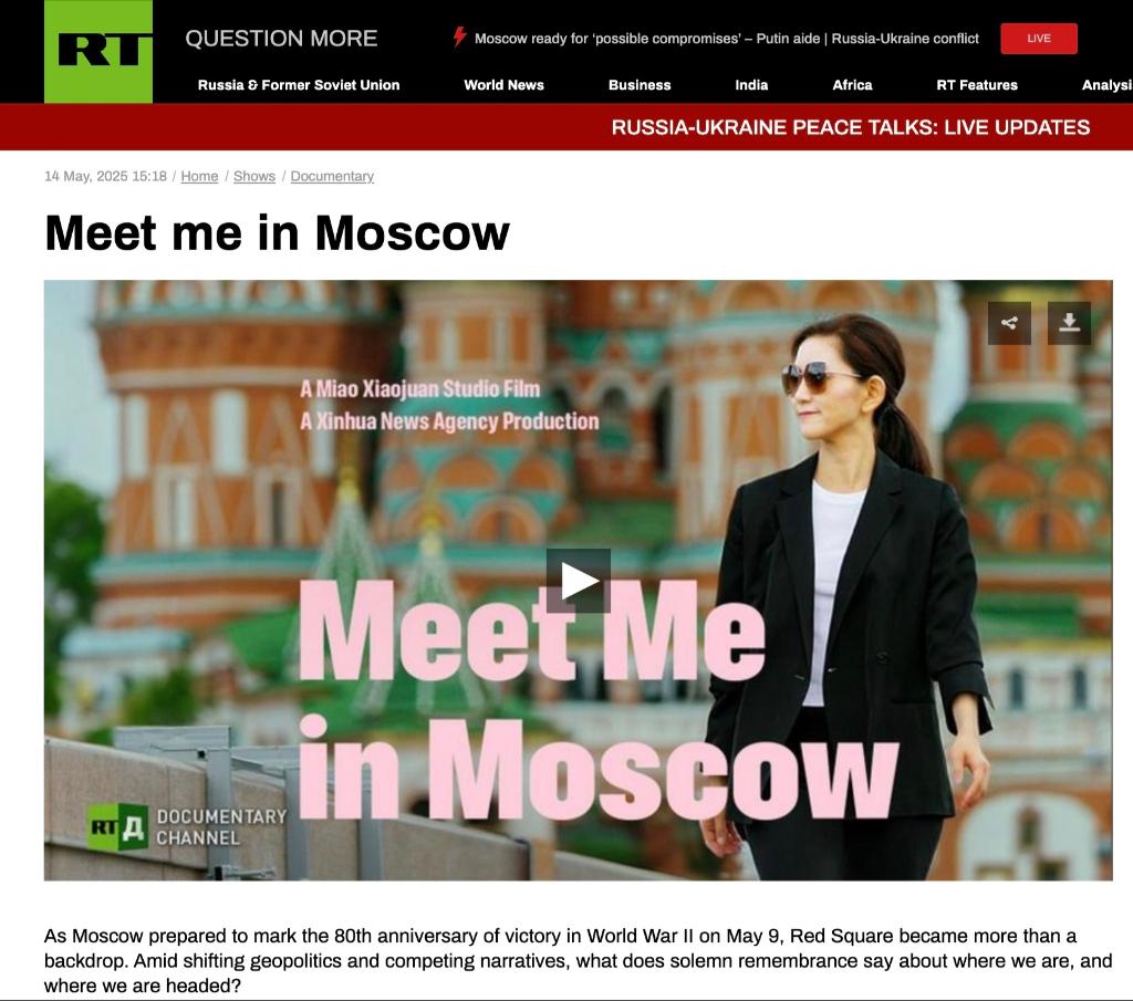 “今日俄罗斯”电视台在社交媒体Telegram平台推介纪录片俄文版。