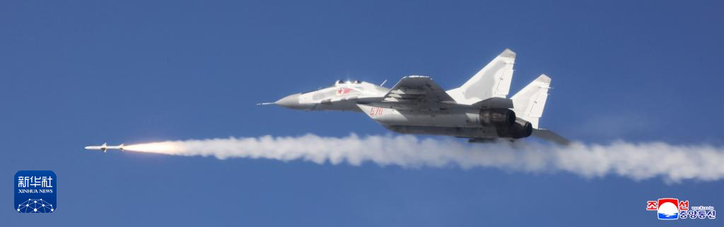 这是朝中社发布的朝鲜空军战机进行防空战斗训练的画面。新华社/朝中社