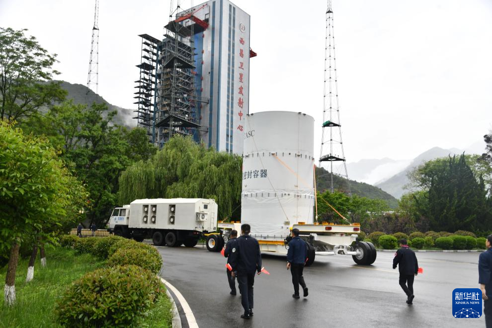 5月18日,行星探测工程天问二号探测器在西昌卫星发射中心按计划完成技术区总装、测试、加注等工作后,顺利转入发射区,后续将按计划开展各项功能检查、联合测试等工作,计划5月底择机实施发射。此前,执行天问二号发射任务的长征三号乙遥一一〇运载火箭,于5月14日顺利由技术区转入发射区,并完成吊装、对接等工作。新华社发(石一辰摄)
